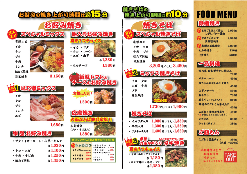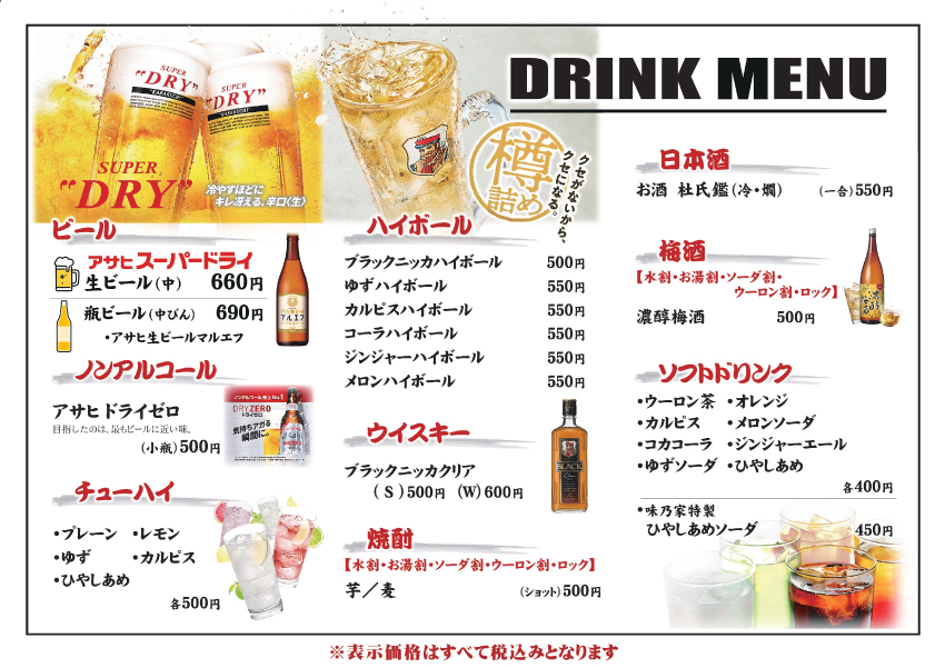 味乃家本店で提供しているメニューです。 詳細は、各カテゴリーからお進みください。